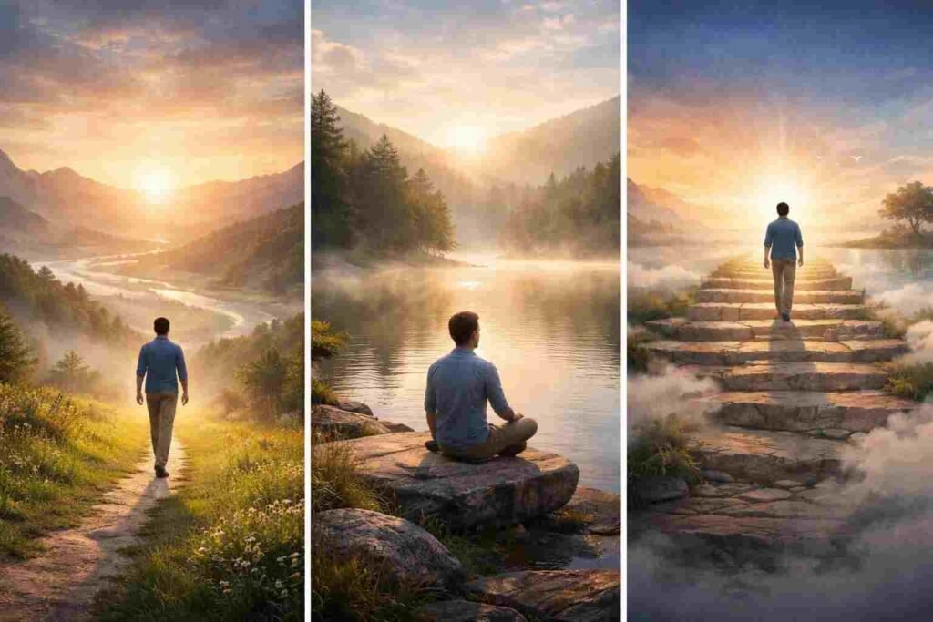 जब what is self realization का उत्तर बाहरी विचारों में नहीं, बल्कि अपने अनुभव में खोजा जाता है, तब self awareness and self realization स्वाभाविक रूप से विकसित होने लगते हैं। यही self realization process जीवन को बोझ नहीं, बल्कि समझ के साथ जीने की कला में बदल देता है। इस यात्रा में पहला कदम ही सबसे निर्णायक होता है, क्योंकि वही दिशा तय करता है। अगला Part इसी जागरूकता को और गहराई से समझने की स्वाभाविक कड़ी बनेगा।